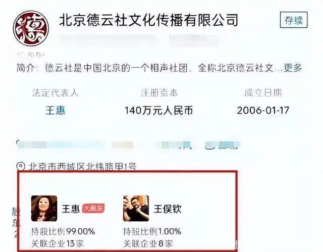 王惠曾在公开场合表示郭麒麟是德云社的接班人,但网友对此却持有怀疑态度,因为王惠在公司的股份占比达到了99%,剩下1%的股份却在因涉嫌犯罪入狱的堂弟手里。王惠独揽大权,对德云社来说到底是不是好事?