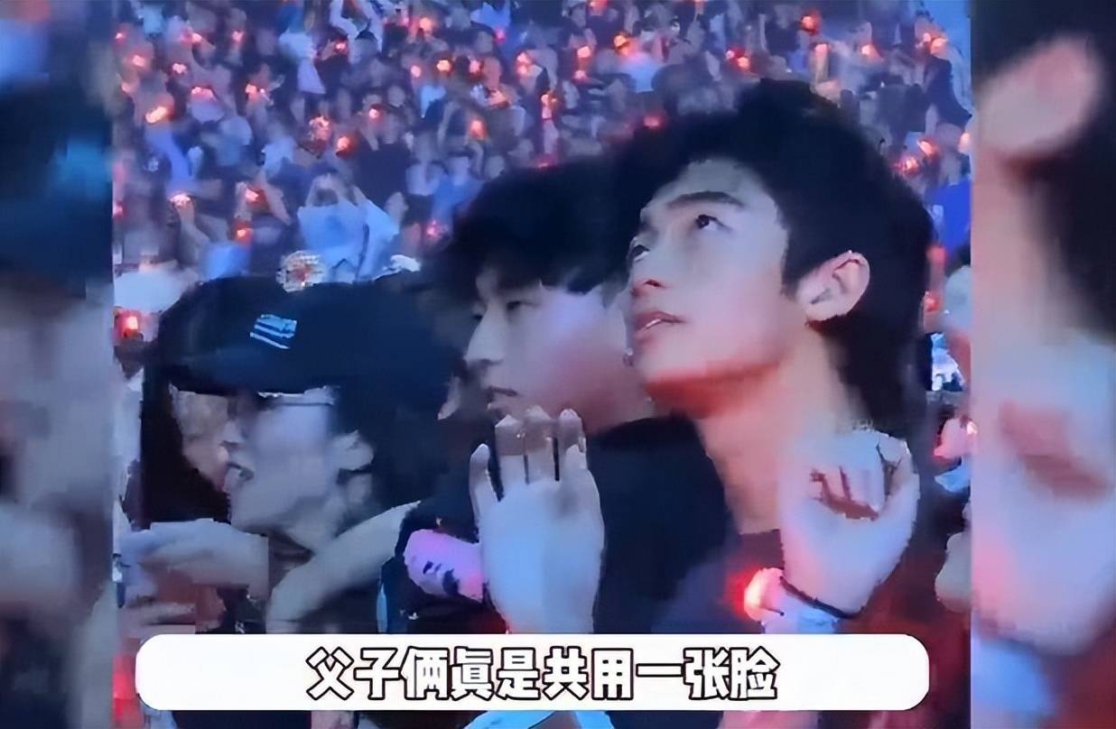 再看他儿子,戴着棒球帽,从侧面看,长相继承了他的优良基因。